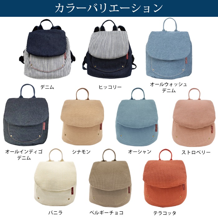 デニム/ヒッコリー/オールウォッシュデニム/オールインディゴデニム/キルティングブラック/ピンクボーダー/バニラ/ベルギーチョコ/シナモン/ストロベリー/オーシャン/アッシュ/ピスタチオ/テラコッタ/オーガニックベージュボーダー/さくらボーダー/ソーダブルー/キャンディピンク/ラテベージュ/ミルクホワイトここのばぁばさん