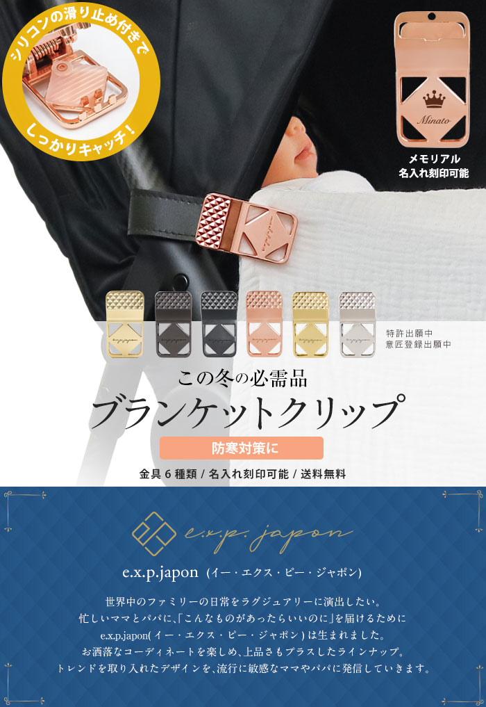 同じシリーズのフックを使用していて、ベビーカーに付けるならお揃いがいいなと思い、デザインを合わせて購入しました。 クリップが固めでしっかりしているので、足をばたつかせてもブランケットが外れることはなさそうな感じです。まだ付けて外に出かけていないので、使うのが楽しみです。