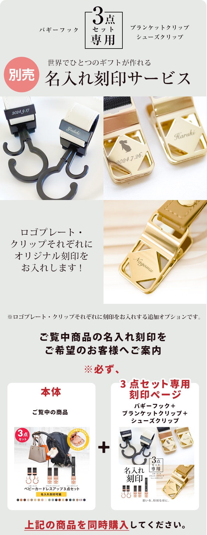 名入れも出来てとっても可愛いく仕上がり満足です! まだ生後1ヶ月なのでバギーフックしか使っていませんが、ゆくゆくはブランケット、シューズの分も使うと思うのでセットで購入出来て良かったです~!