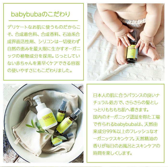 babybuba ベビーブーバ トライアルセット 国産オーガニック 赤ちゃん用コスメヘア&ボディシャンプー、ローション、ベビーオイル