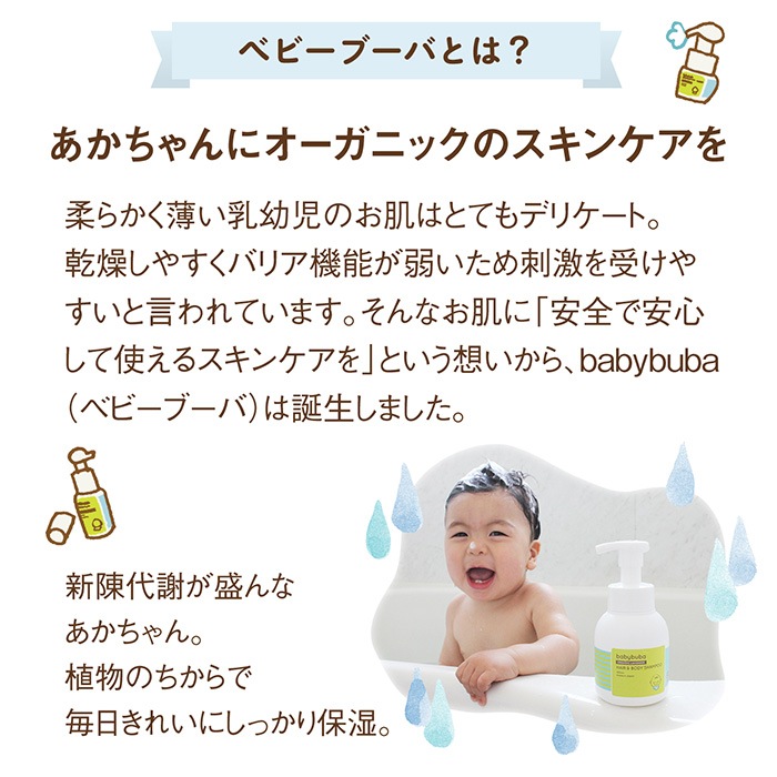 babybuba ベビーブーバ ヘア&ボディシャンプー 泡タイプ シャンプー ボディソープ 国産 オーガニック スキンケア 全身洗える