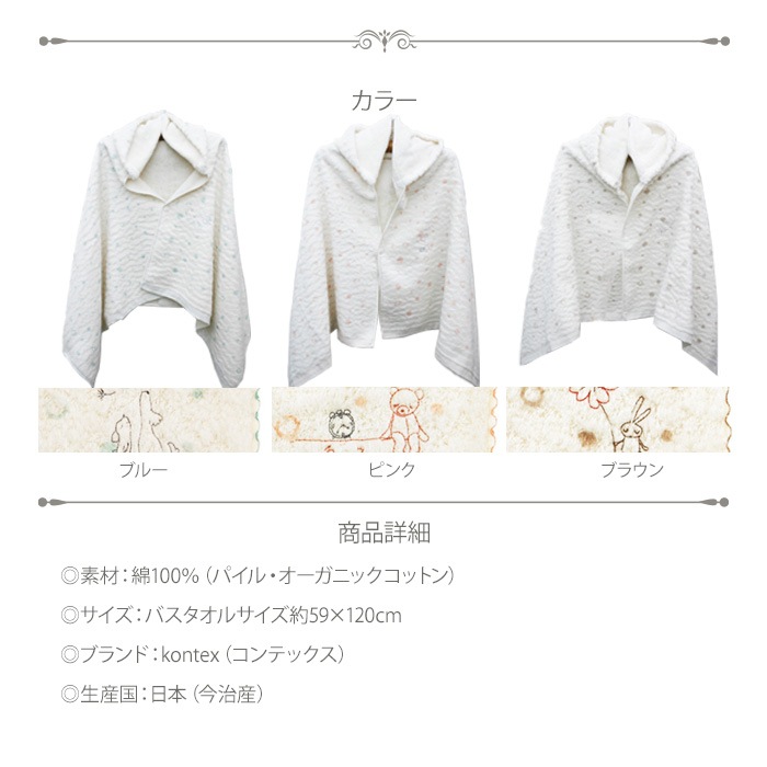 メレンゲ コンテックス フード付きバスタオル 今治タオル 出産祝い 名入れ無料 バスローブ バスポンチョ おむつケーキ と同梱可