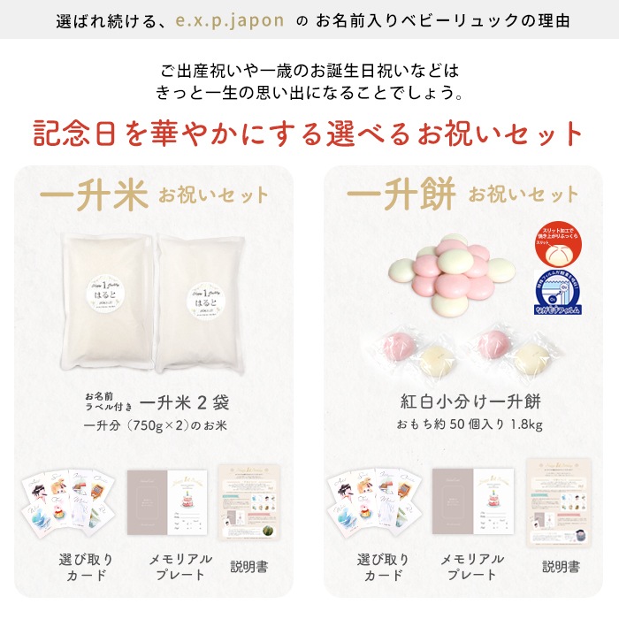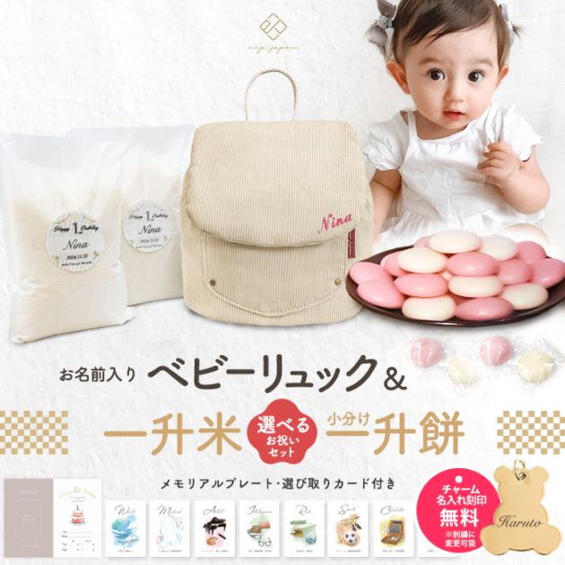 アニマル柄ベビーリュック+一升餅セット 名入れ無料 1歳 誕生日 リュックサック 一生餅 一升餅セット 一升餅小分け 贈り物 プレゼント