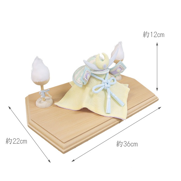 | サイズ | 約W36×D22×H14cm 兜飾りのみ 約 W10×D10×H14cm(袱紗、スタンド除く) |