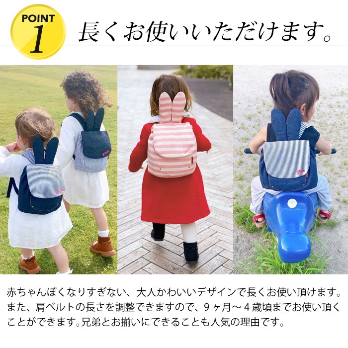 【名入れ&送料無料】ベビーリュック バニー ウサギ柄 1歳 リュック 出産祝い 人気 男の子 女の子 ベビー 子供 ブランド ギフト プレゼント おしゃれ