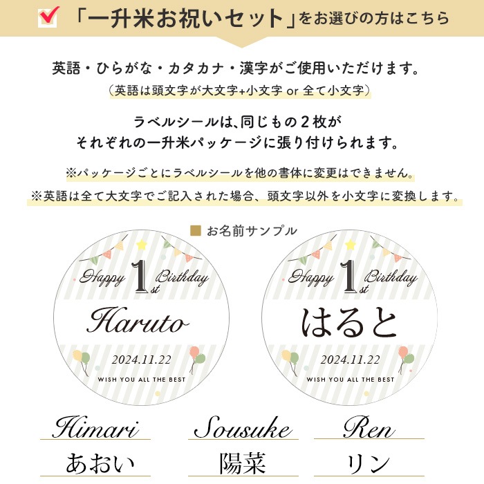 ※一升米セット以外を選択した方は「不要」とご記入下さい。※必須