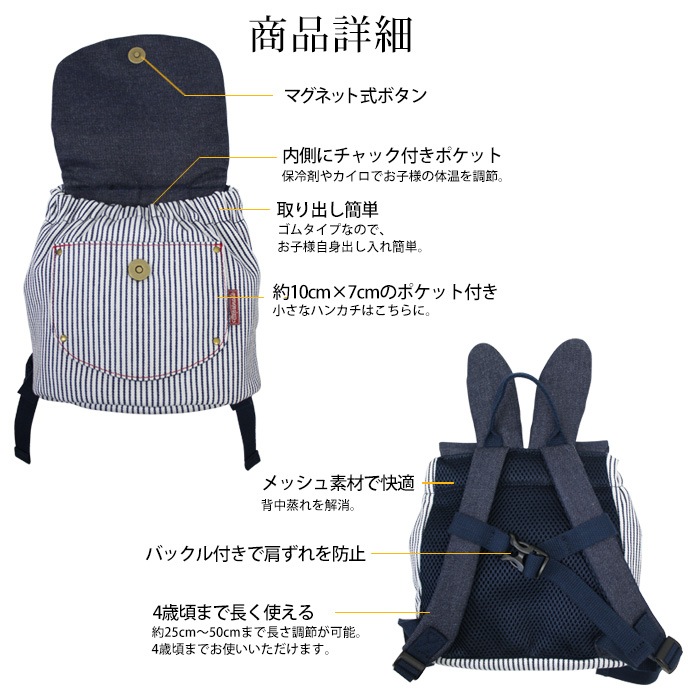 【名入れ&送料無料】ベビーリュック ボーダー デニムトリコ ジェリービット 1歳 リュック 出産祝い 人気 男の子 女の子 ベビー 子供 ブランド ギフト プレゼント おしゃれ