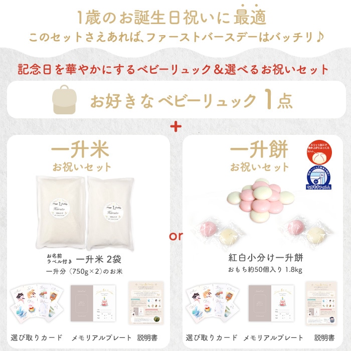 アニマル柄ベビーリュック+一升餅セット 名入れ無料 1歳 誕生日 リュックサック 一生餅 一升餅セット 一升餅小分け 贈り物 プレゼント