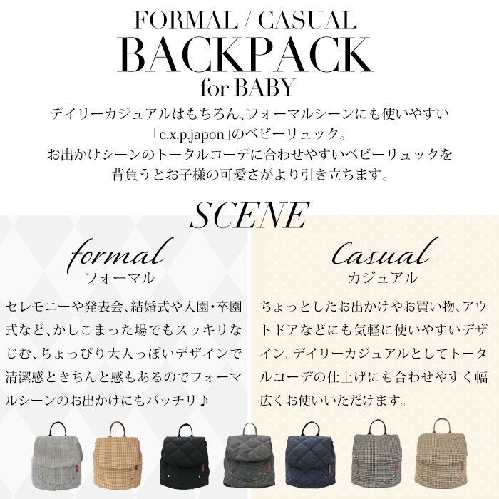 【名入れ&送料無料】ベビーリュック キルティング チェック柄 グレンチェック 千鳥柄 1歳 リュック 出産祝い 人気 男の子 女の子 ベビー 子供 ブランド ギフト プレゼント おしゃれ