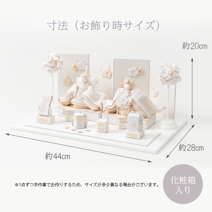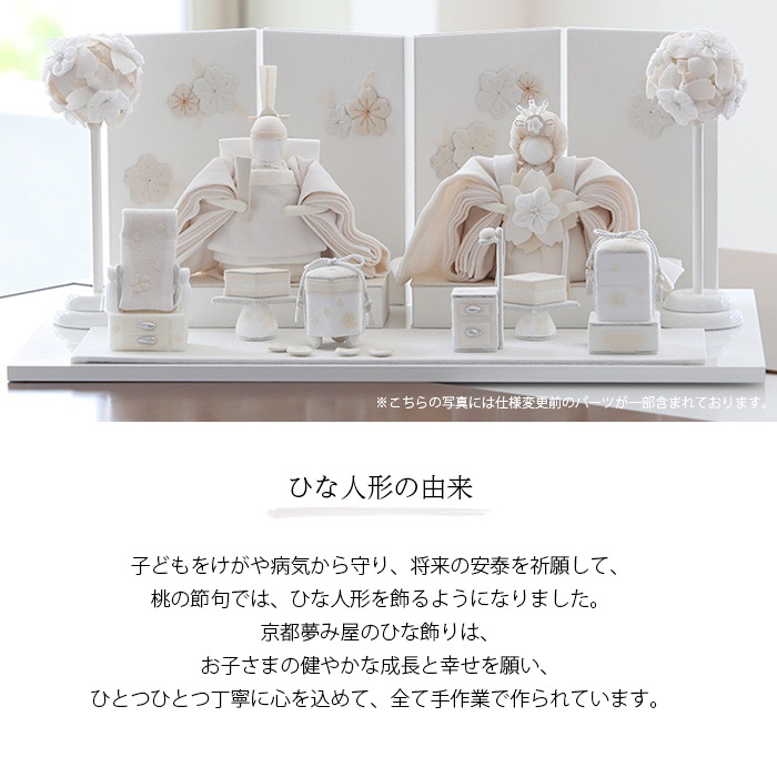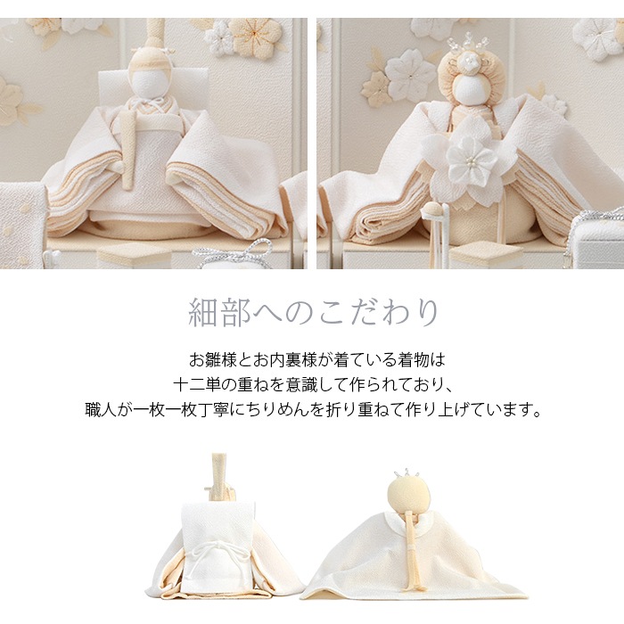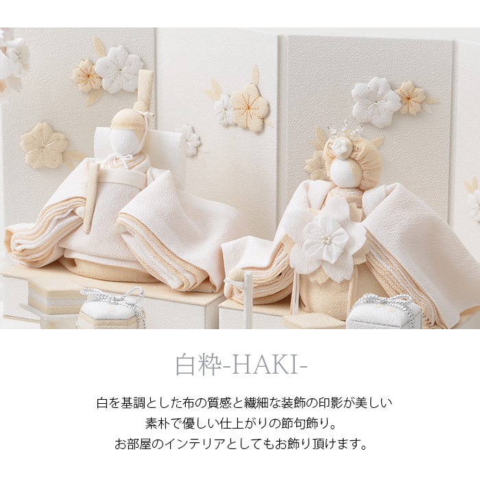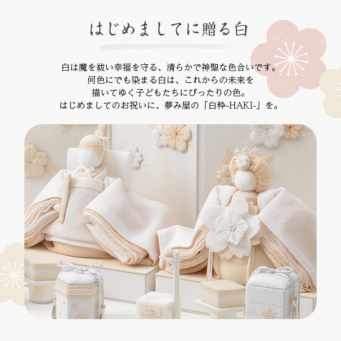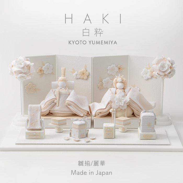 【送料無料 ポイント10倍】白粋-HAKI- 桜舞うお雛様 雛人形 雛飾り おひなさま 白 コンパクト 親王飾り ちりめん細工 専用収納ケース入り 日本製 桃の節句 京都 夢み屋 HK-4