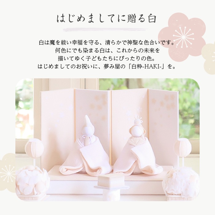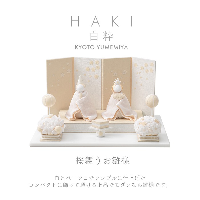 【送料無料】【ポイント10倍】白粋-HAKI- 雛揃/麗華 雛人形 雛飾り おひなさま 白 コンパクト 親王飾り ちりめん細工 専用収納ケース入り 日本製 桃の節句 京都 夢み屋 HK-3