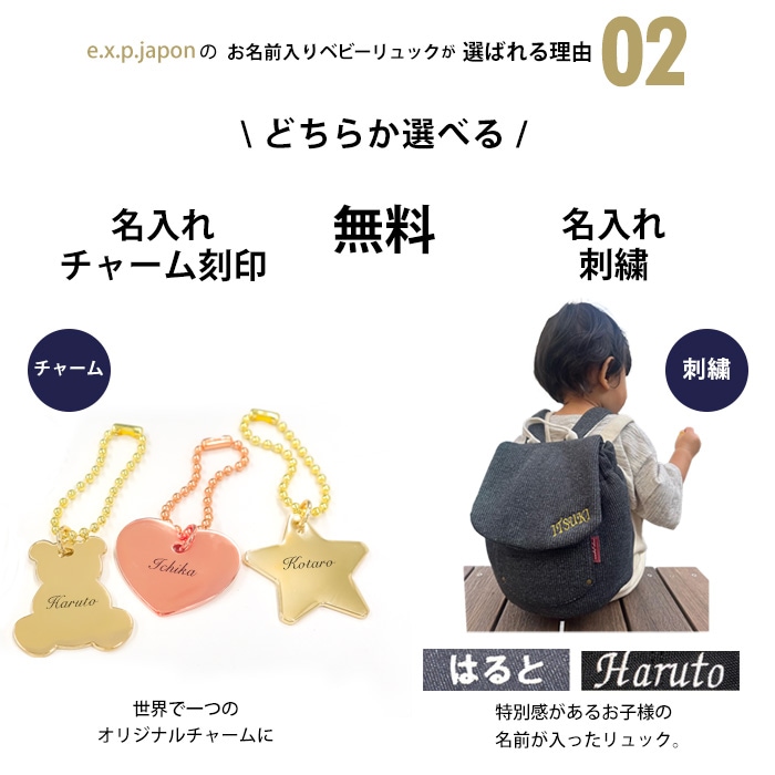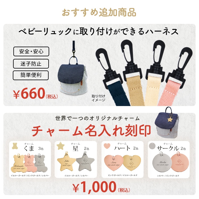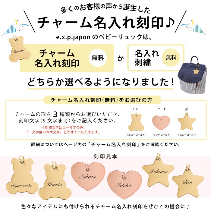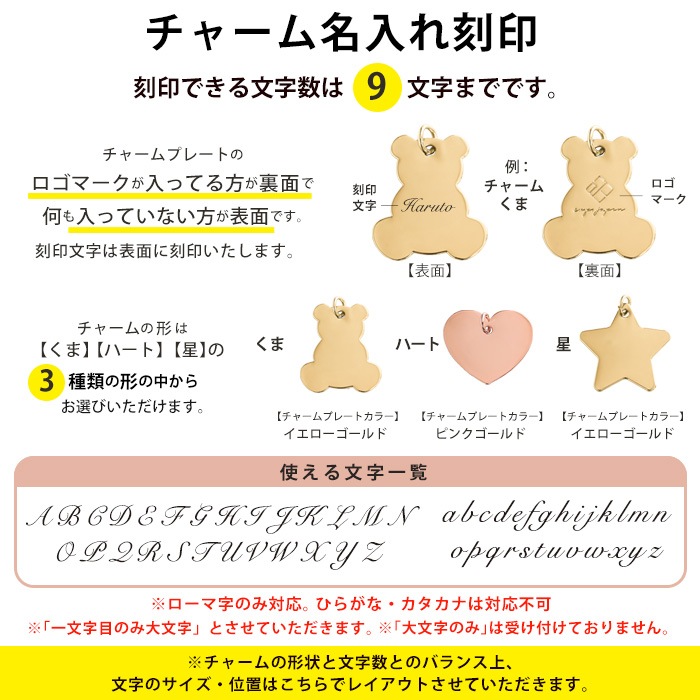 ※無料での名入れは「チャーム」「刺繍」どちらか一方のみです。※必須