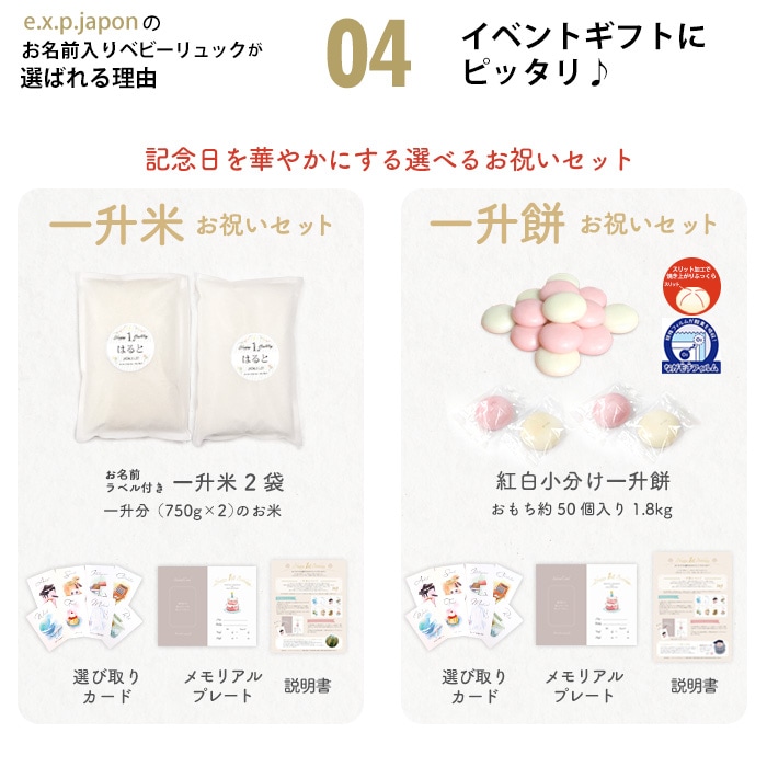アニマル柄ベビーリュック+一升餅セット 名入れ無料 1歳 誕生日 リュックサック 一生餅 一升餅セット 一升餅小分け 贈り物 プレゼント